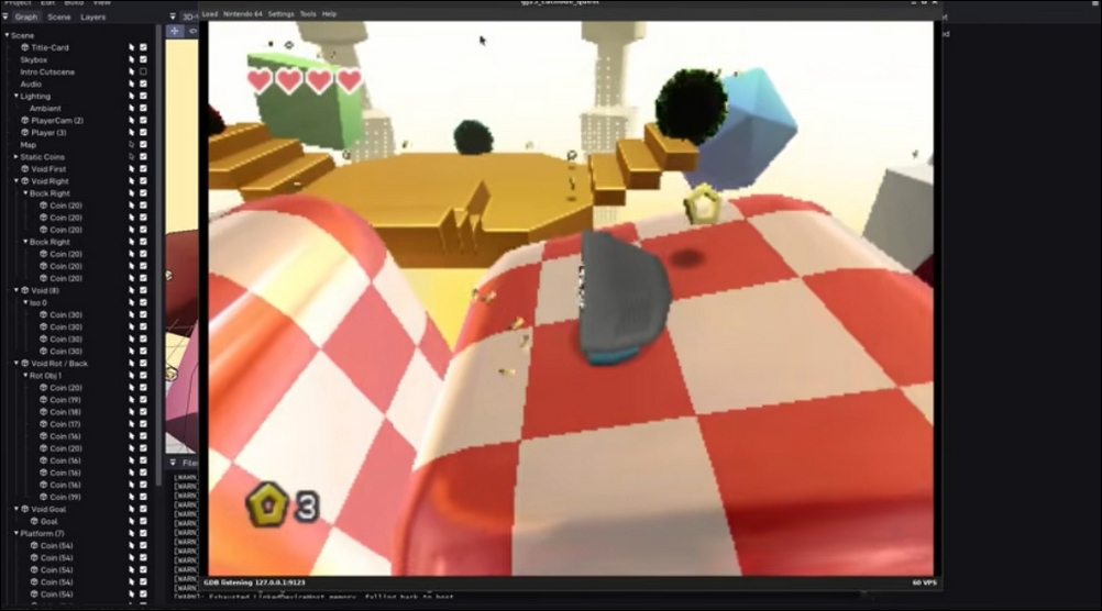 Siła Pyrite64 tkwi jednak nie tylko w samym silniku, ale w integracji z edytorem. To ważne, bo w świecie retro twórcy często borykają się z problemami polegającymi na łączeniu osobnych narzędzi do grafiki 3D, programowania itp. Tutaj projektowanie poziomów, zarządzanie pamięcią i programowanie skryptów gry może odbywać się w jednym środowisku. To próba przeniesienia współczesnej filozofii pracy znanej z Unity czy Unreal Engine na grunt sprzętu z 1996 roku. Pyrite64 umożliwia budowanie gier, które działają na oryginalnym sprzęcie Nintendo 64 lub emulatorach, oferując nowoczesny interfejs użytkownika, narzędzia do edycji scen, zarządzania zasobami takimi jak modele 3D, tekstury czy animacje oraz zintegrowany menedżer, który ułatwia instalację kompilatorów i zależności pomiędzy poszczególnymi elementami. Jak zobaczymy na poniższym filmie wszelkie wprowadzone zmiany w tworzonym projekcie możemy od razu sprawdzić uruchamiając grę w ciągu kilku sekund. To coś co usprawnia i przyśpiesza prace.
